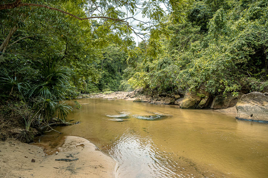 Nach einer knappen Stunden Rückweg treffen wir an der großen Übernachtungshütte auf zahlreiche andere Menschen, die in dem Gewässer baden. Wir sind völlig baff, da diese zuvor am Morgen nicht dort gewesen sind und wir dachten, alleine in der Natur zu sein. Allerdings ist es Sonntag und der einzig arbeitsfreie Tag der Woche und da ist es üblich, dass hier badene Gäste herkommen.