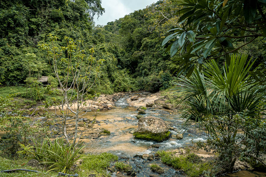 Als wir den beschwerlichen Weg zurückgehen, halte ich die immer schwerer werdende Kamera abwechselnd in der rechten und linken Hand. Dass ich nur das Tele-Objektiv mithabe und keinerlei Fotos von der tollen Umgebung machen kann, ist zwar schade, aber das Gewicht alleine reicht auch schon um zu sagen, das ist alles nicht dafür gemacht, durch den Dschungel getragen zu werden.