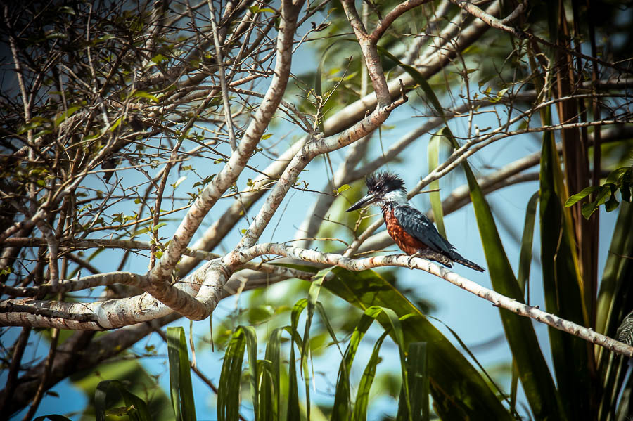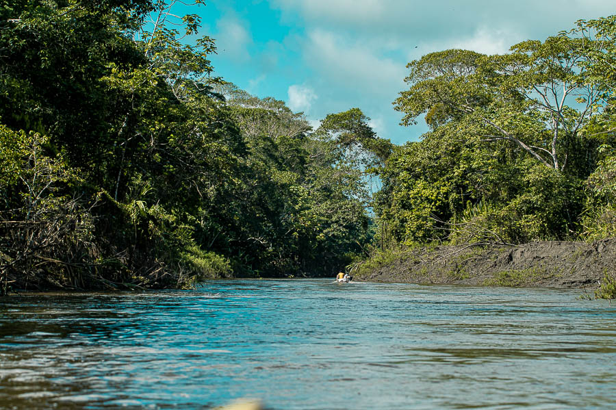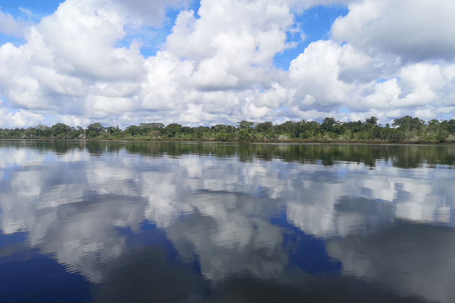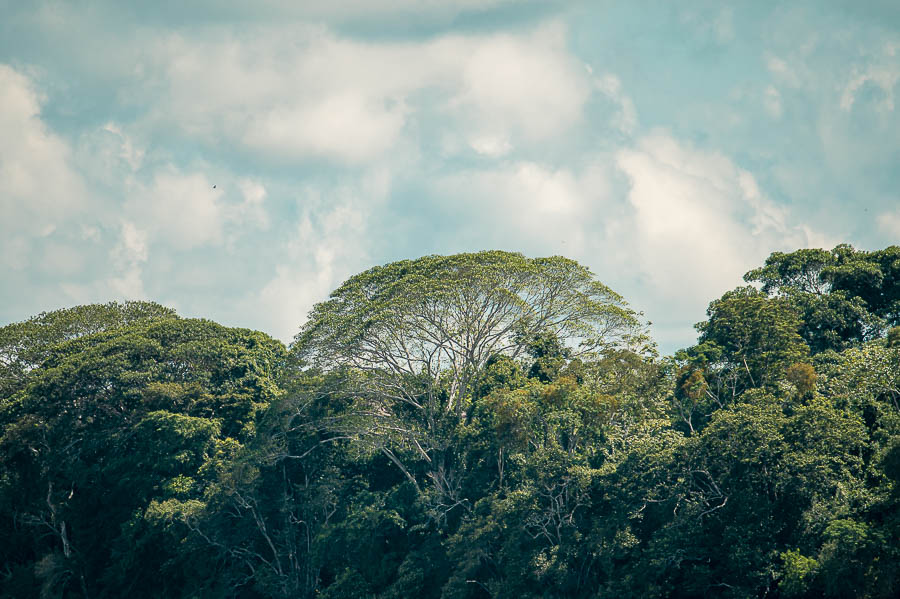 Fotografisch gesehen das absolute Highlight bisher ist eine Bootstour in einen nahegelegenen Seitenarm des Ucayali Rivers. Über eine schmale Verbindung vom Hauptfluss dauert es ein Weilchen, ehe wieder ein großes offenes Gewässer folgt. Und auf einmal ist das Wasser spiegelglatt, keine Schiffe, Strömung oder Wind sorgen hier für Unruhe.