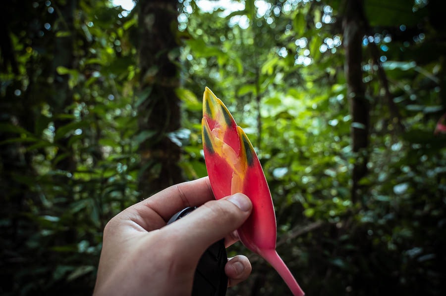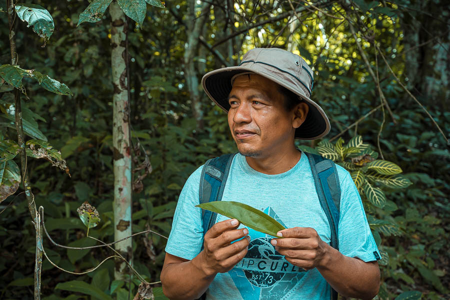 Einen Tag fahren wir morgens im typischen Holzboot eine halbe Stunde flussaufwärts, durchlaufen dort dann einen ethnobotanischer Garten mit allerlei Heilpflanzen. Dieser wird von einem ansässigen Indigenen seit gut 30 Jahren gepflegt. Dieses Wissen schafft es meist nicht in die weite Welt. Die dortigen Pflanzen sind aber äußerst vielseitig einsetzbar, seine Kenntnisse sind atemberaubend.